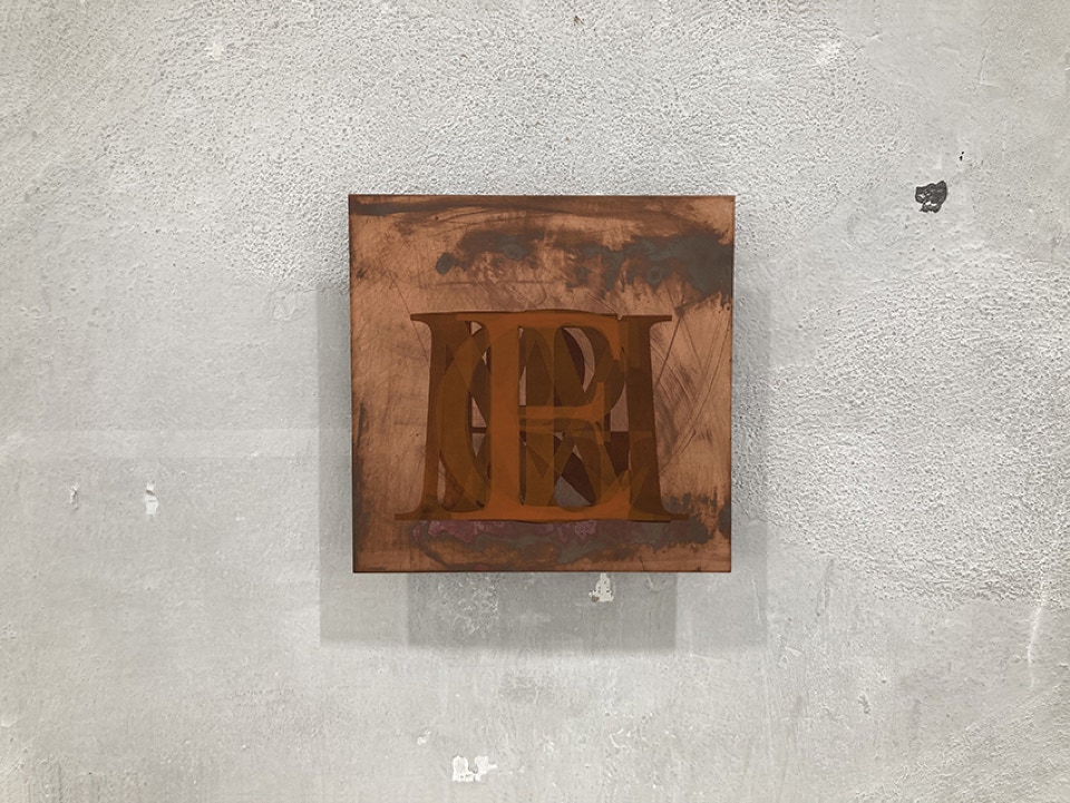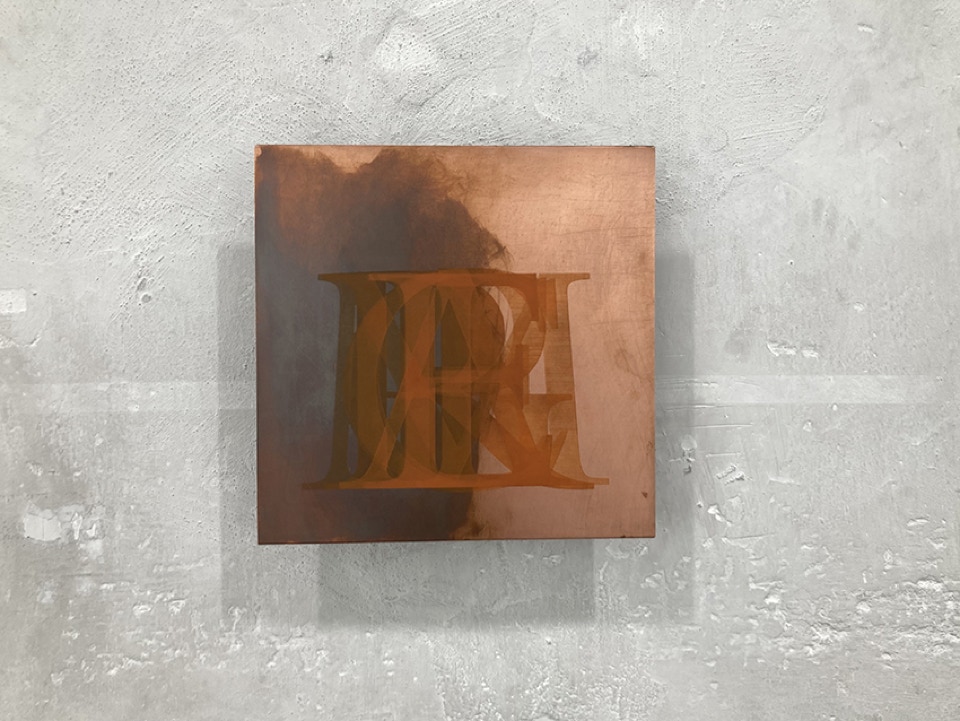 40 × 40 cm, Goldschwefel mit Acrylbinder auf Kupferblech